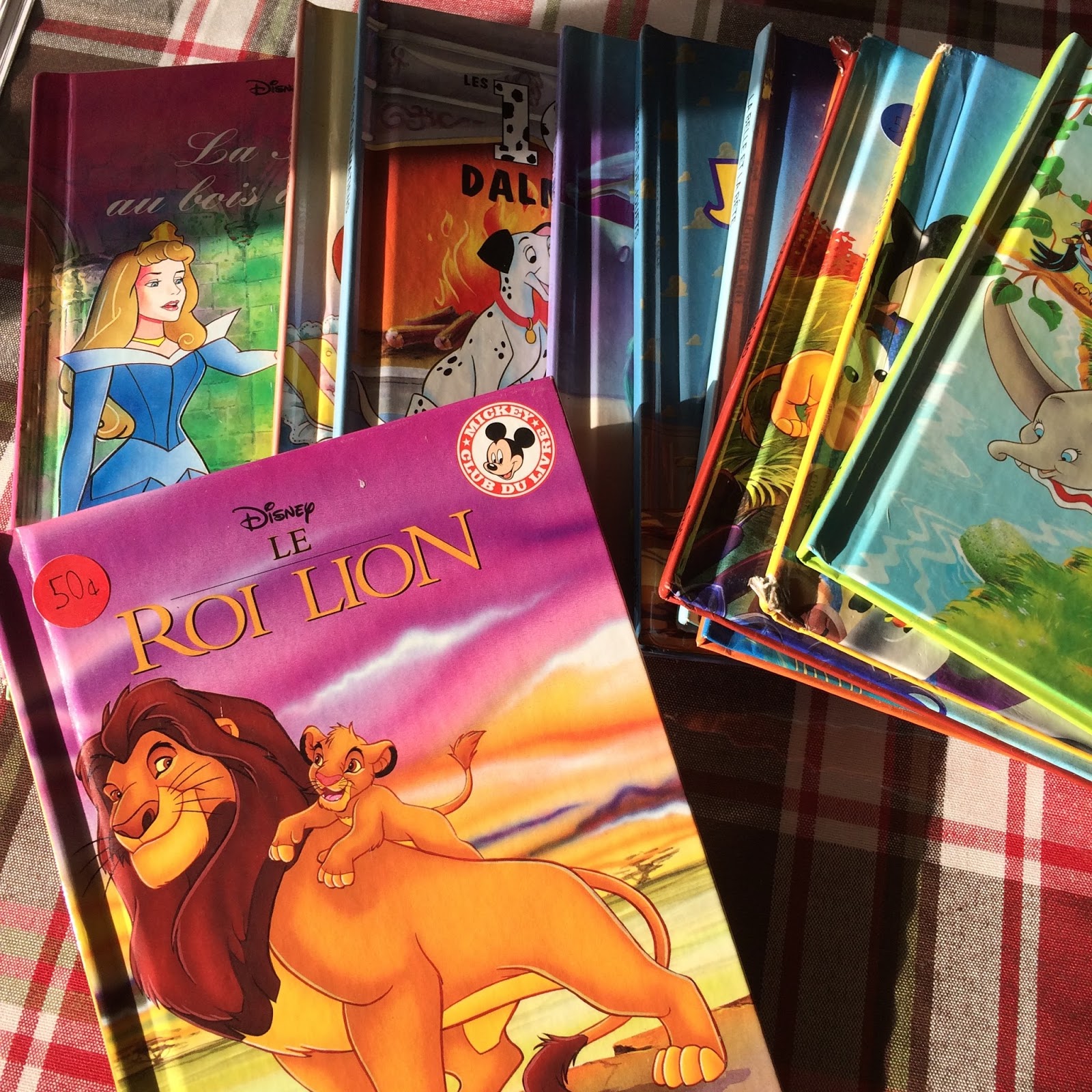 Chaque année, il y a des livres de cette collection que se retrouvent à la vente de livres et j'essaie de garnir ma bibliothèque avec. Cette année, il y en avait vraiment beaucoup, mais je me suis limitée à mes bons vieux classiques; Les 101 Dalmatiens, Dumbo, La belle au bois dorment et évidemment, Le roi Lion! Je n'ai pas pris d'histoires dérivés des contes classiques, sauf Simba et Nala sauvent l'éléphant (J'oublie son nom). Je ne peux pas résister à un livre avec Simba et Nala! :D